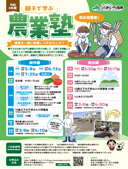 - 令和8年度 親子で学ぶ農業塾(稲作編/畑作編)お申し込みフォーム