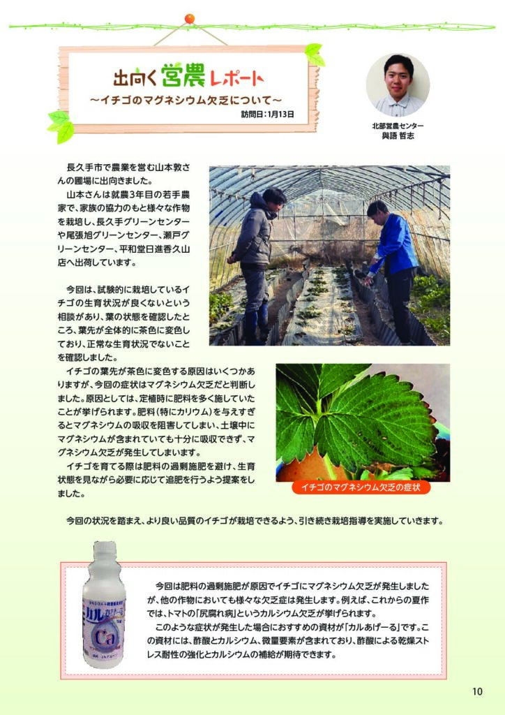 イチゴのマグネシウム欠乏について 広報誌「ぐりんぷらざ」2026年2月号