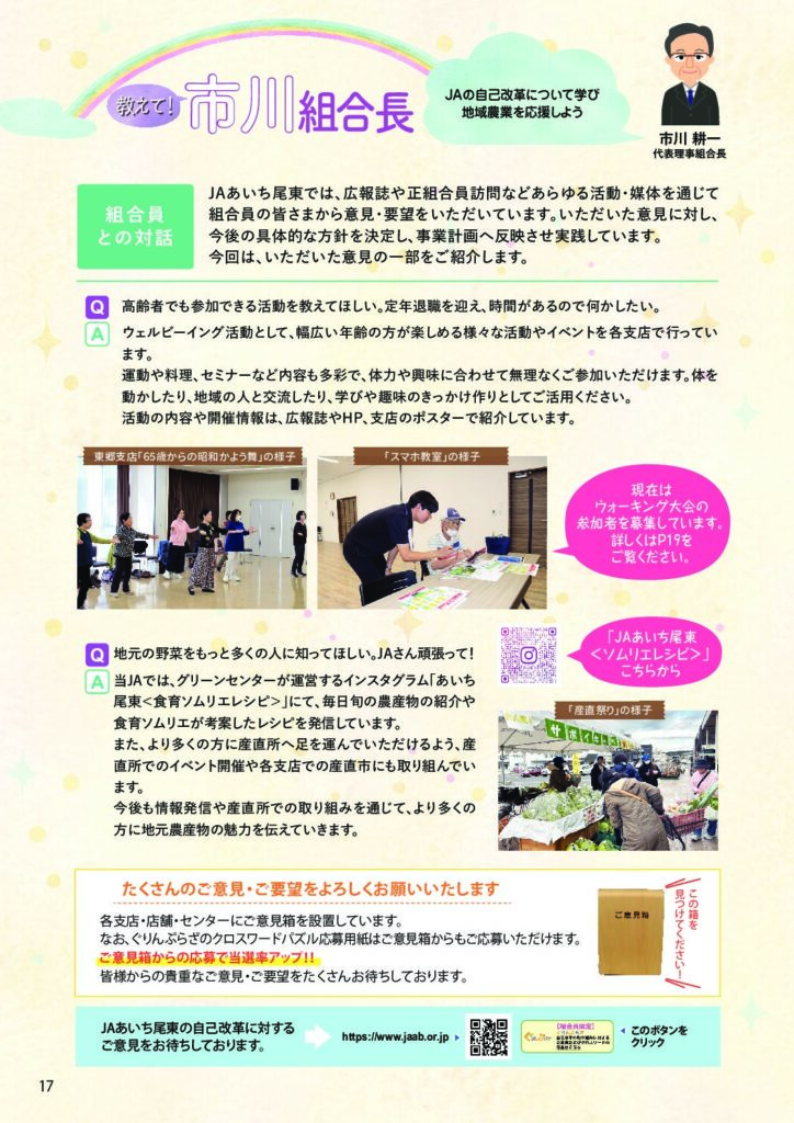JAあいち尾東の自己改革広報誌「ぐりんぷらざ」2024年4月号