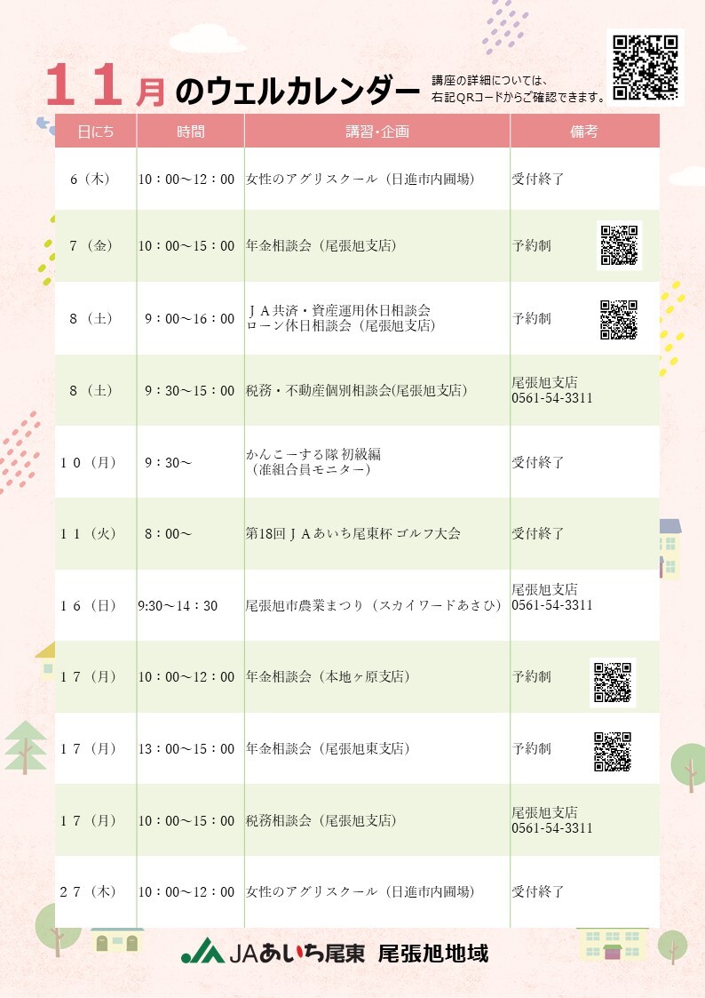 ウェルステーションの予定について(尾張旭地域10月・11月)