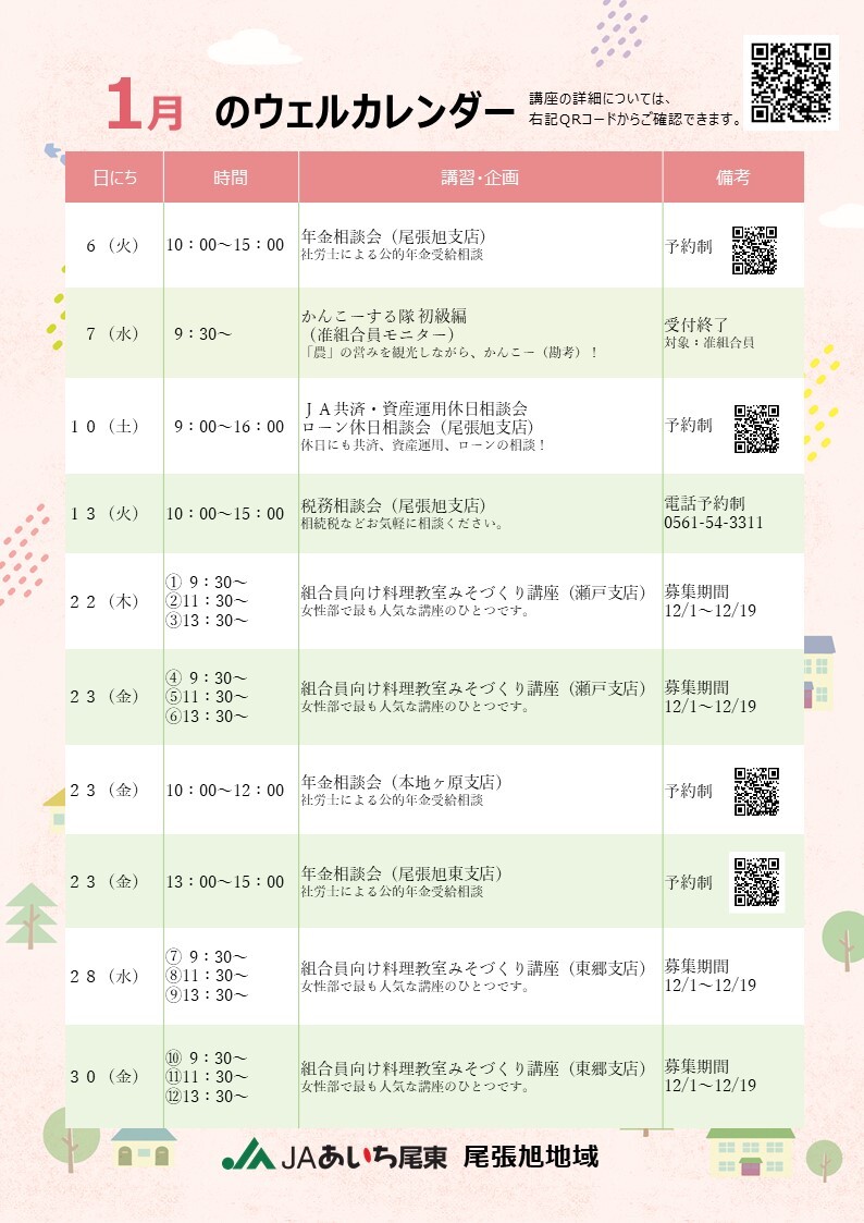 ウェルステーションの予定について(尾張旭地域12月・1月)NEW