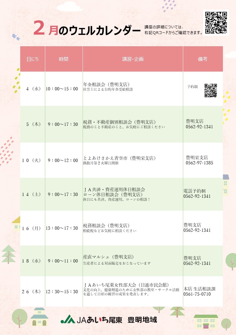 ウェルステーションの予定について(豊明地域1月・2月)