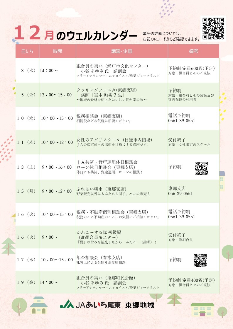 店頭もしくはホームページの「ウェルカレンダー」をご覧の上、気になる講座については各地域基幹支店窓口、または下記お問い合わせ先へご連絡ください。