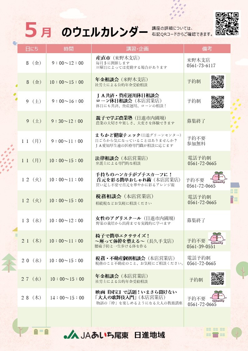 ウェルステーションの予定について(日進地域4月・5月)NEW