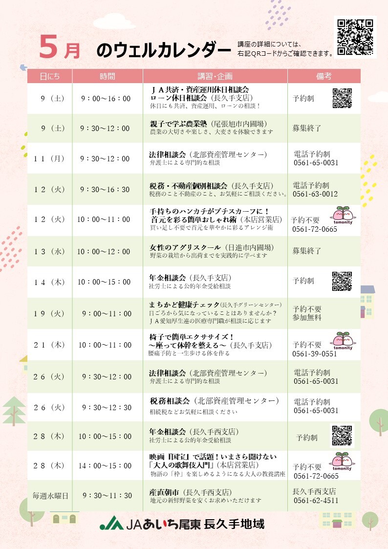 ウェルステーションの予定について(長久手地域4月・5月)NEW
