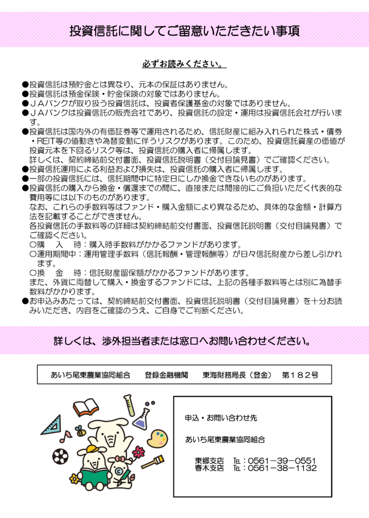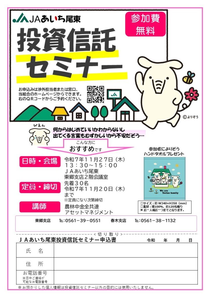 投資信託セミナーの開催について【東郷地域】NEW