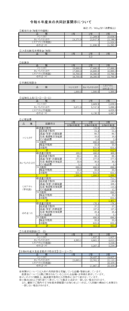 令和6年産米の共同計算開示について