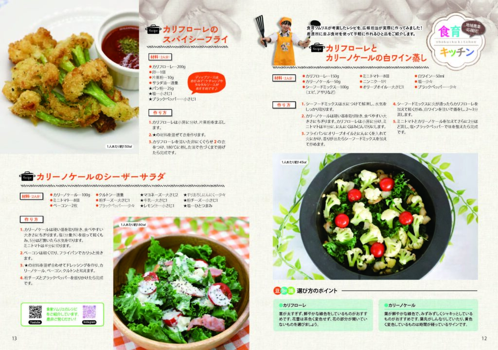 【ぐりんぷらざ12月号】カリフローレとカリーノケールの白ワイン蒸し、カリフローレのスパイシーフライ、カリーノケールのシーザーサラダ